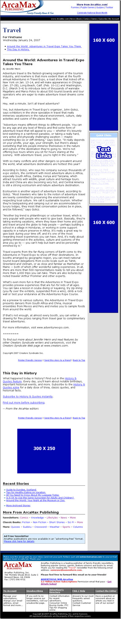 Every day, we send 2.5 million newsletters to our subscribers. Our readers check their email inboxes and read their ArcaMax Newsletters regularly... It's content they want; content they've requested.