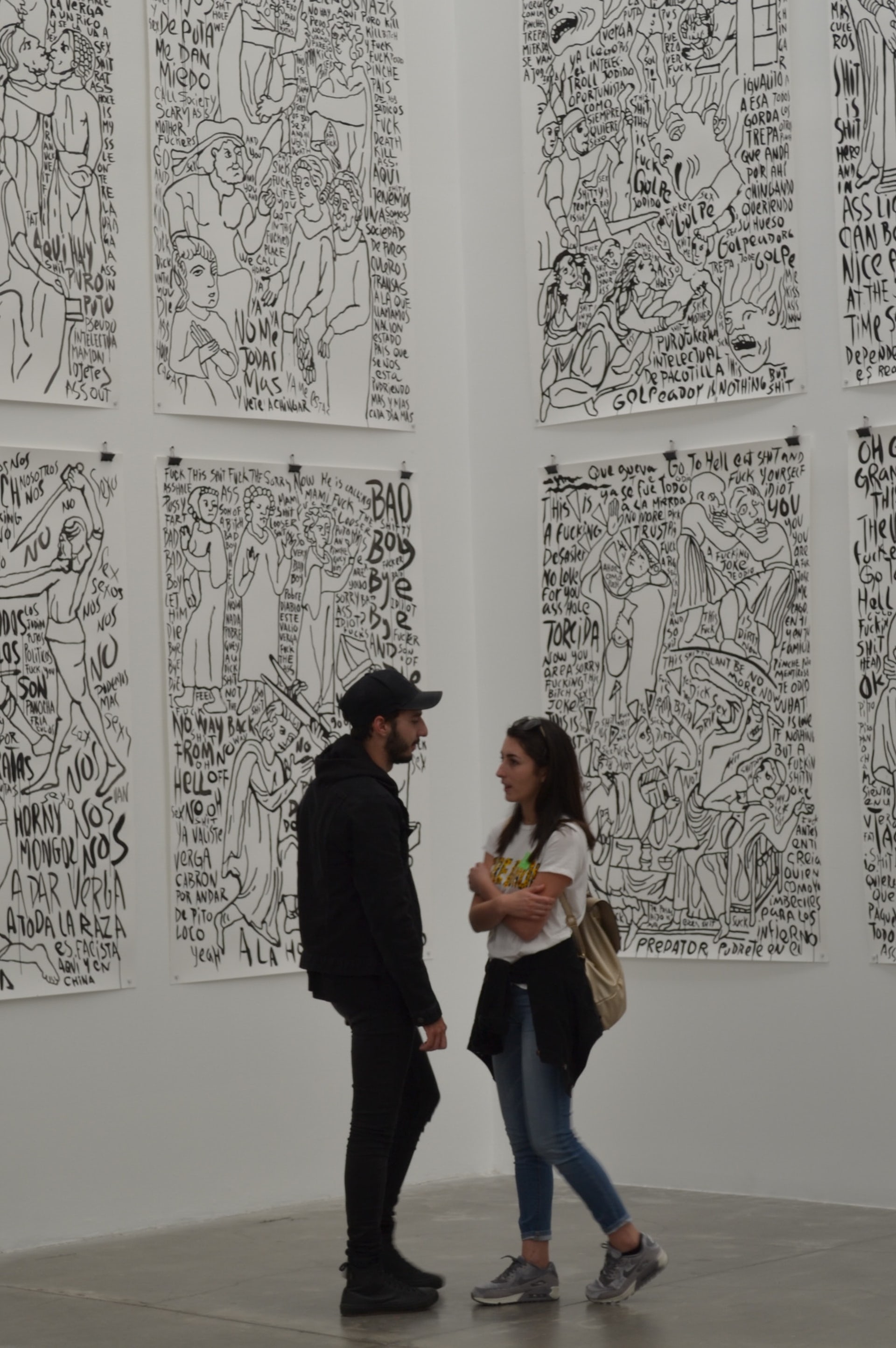 Self-described critical Chicana muralists, such as Judith Baca, and pachuco graffiti writers such as Chaz Bojórquez, had been painting on walls around Los Angeles as early as the 1970s. These wall artists’ styles were often maligned by city leaders, business owners and wealthy Anglos. But something changed when these inner city aesthetics became the mainstream backdrop for arts communities.
