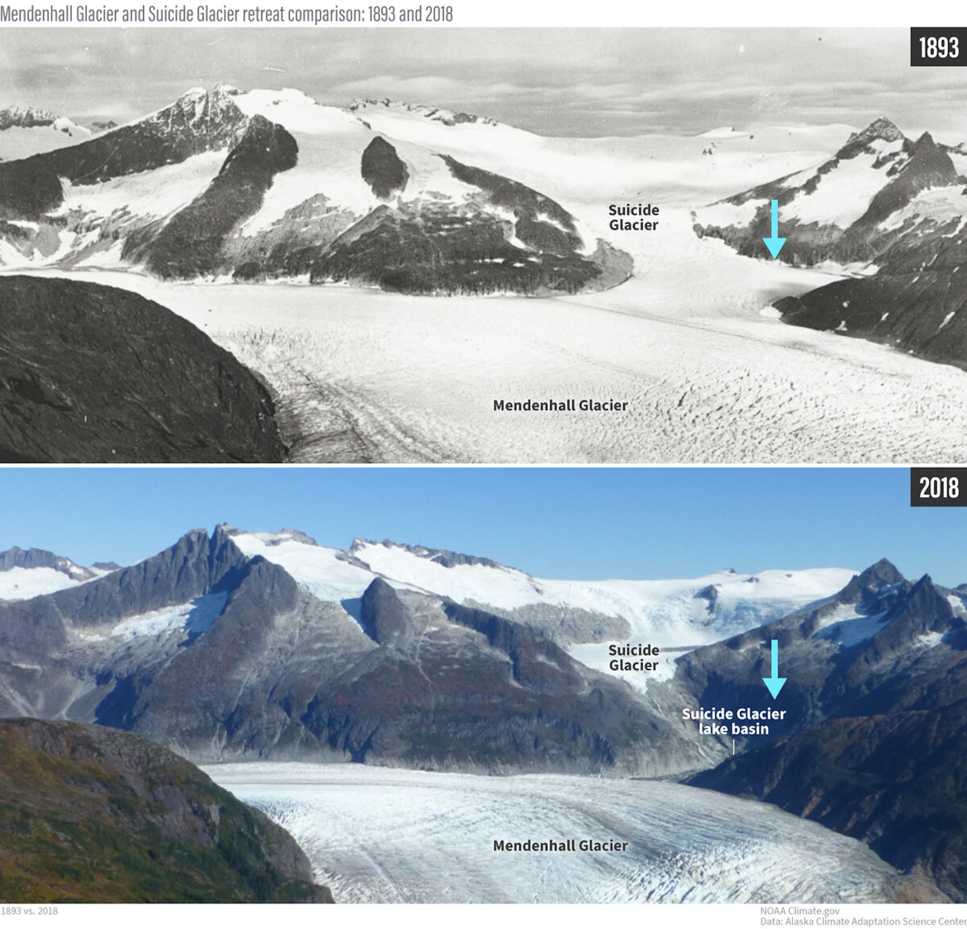 Glacier loss in Alaska is accelerating as temperatures rise. Due to the large volume of glaciers and the many intersecting valleys filled with ice in Alaska, there is a high probability that new lakes will develop as side valleys deglaciate, introducing new potential hazards.