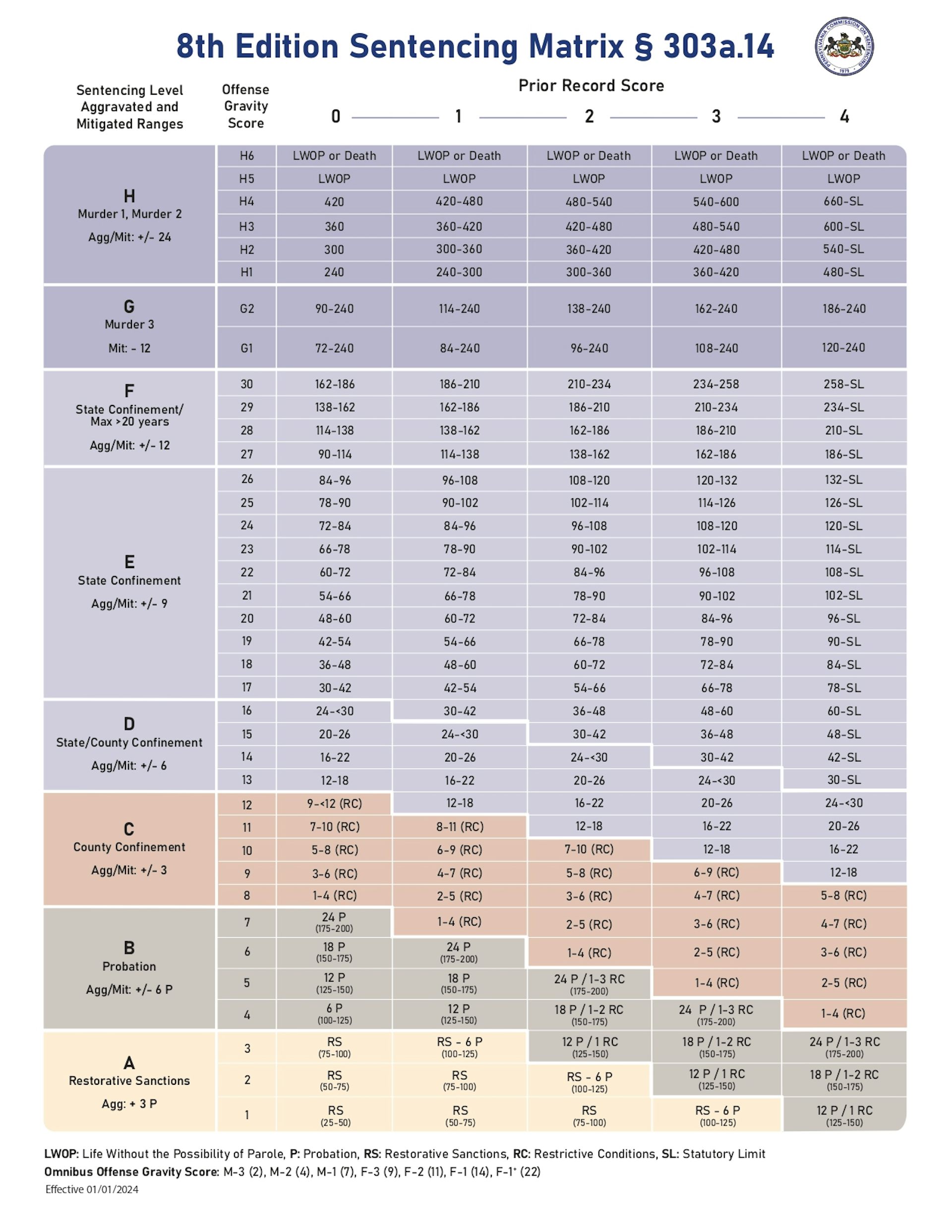 Pennsylvania’s new sentencing guidelines went into effect on Jan. 1, 2024. They mark the eighth iteration since the state first introduced such guidelines in 1982 and are perhaps the most comprehensive revision to date.