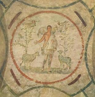 Probably the most popular syncretic image is Christ as the Good Shepherd, a beardless, youthful figure based on pagan representations of Orpheus, Hermes and Apollo.