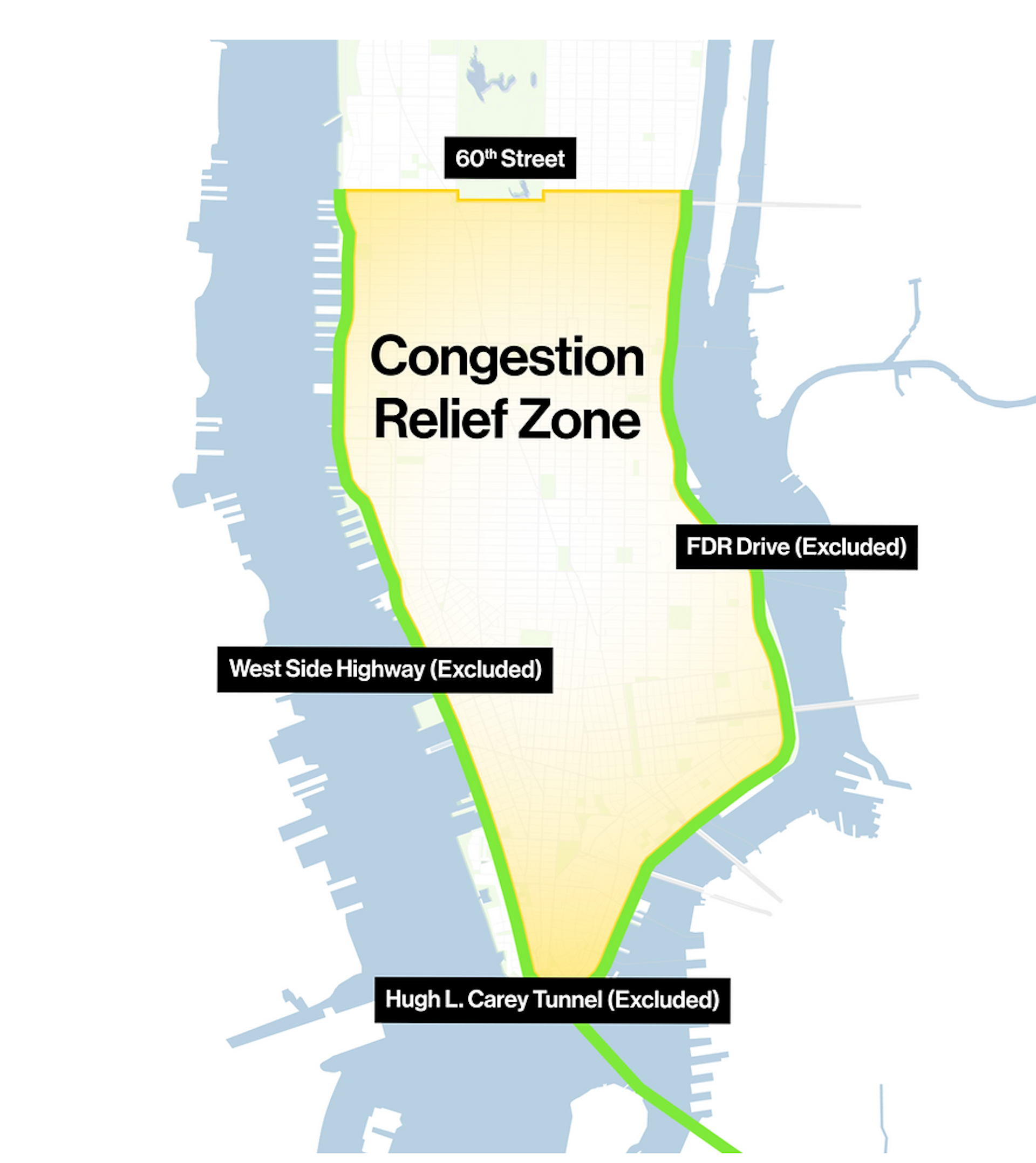 In addition, drivers who travel via Franklin D. Roosevelt Drive on Manhattan’s eastern edge, the West Side Highway on its western edge, or the Carey Tunnel between Brooklyn and Battery Park will not be charged if they do not enter any street in the Congestion Relief Zone. Drivers from the Bronx, Queens and Staten Island will be eligible for rebates and discounts on certain bridge tolls.