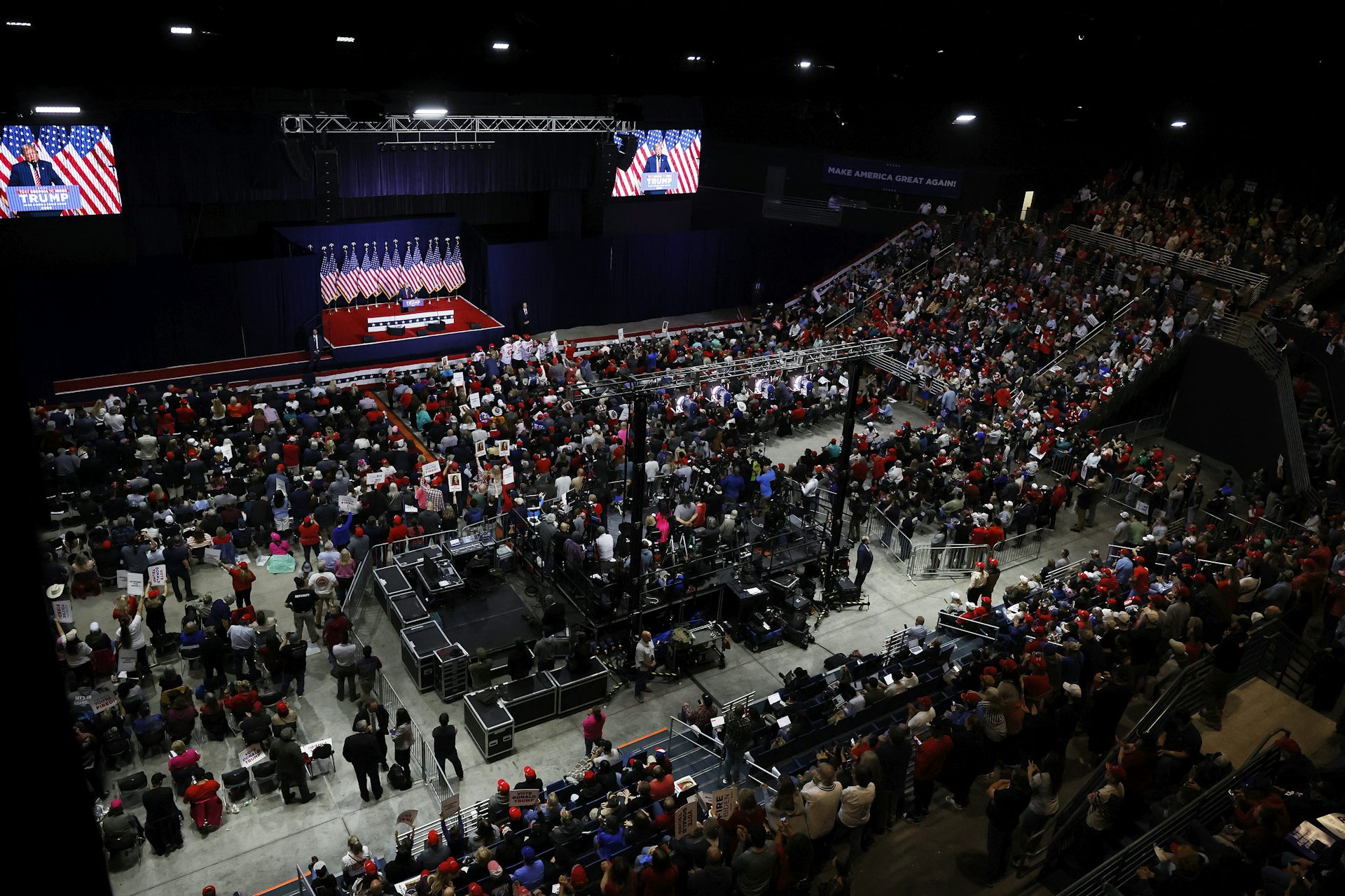 During the rally, Trump blamed Biden for the death of 22-year-old Georgia nursing student Laken Riley. An immigrant from Venezuela who entered the U.S. illegally has been arrested and charged with her murder.