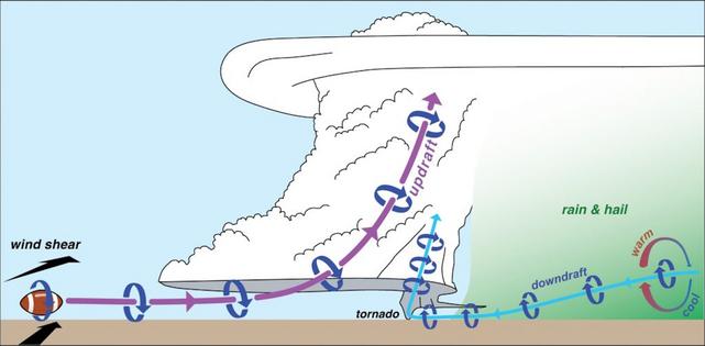 Our goal is to figure out where tornadoes are most likely to occur that day. Temperature, moisture and winds, and how these change with height above the ground, all provide clues.