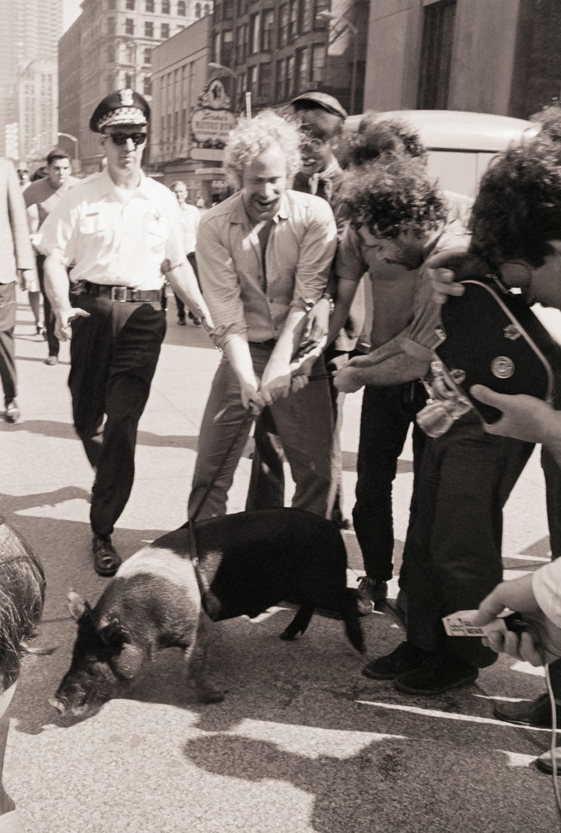 Police arrested several Yippies for disorderly conduct after they paraded Pigasus outside the 1968 Democratic National Convention. Pigasus was taken into “protective custody” by police and eventually wound up at a farm.