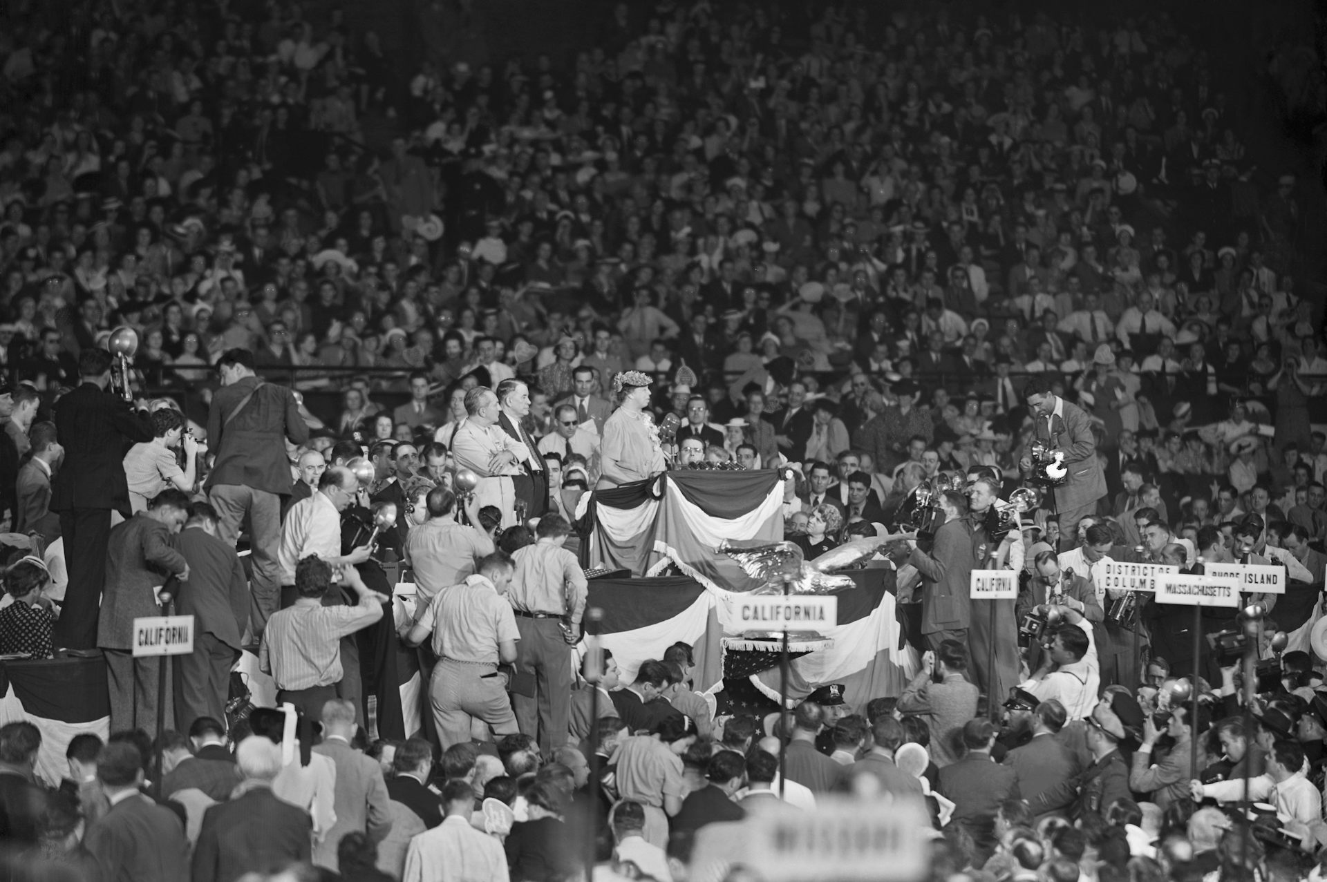 Eleanor Roosevelt got up in front of the contentious and squabbling convention and said, “This is no ordinary time. No time for weighing anything except what we can do best for the country as a whole, and that responsibility rests on each and every one of us as individuals.”