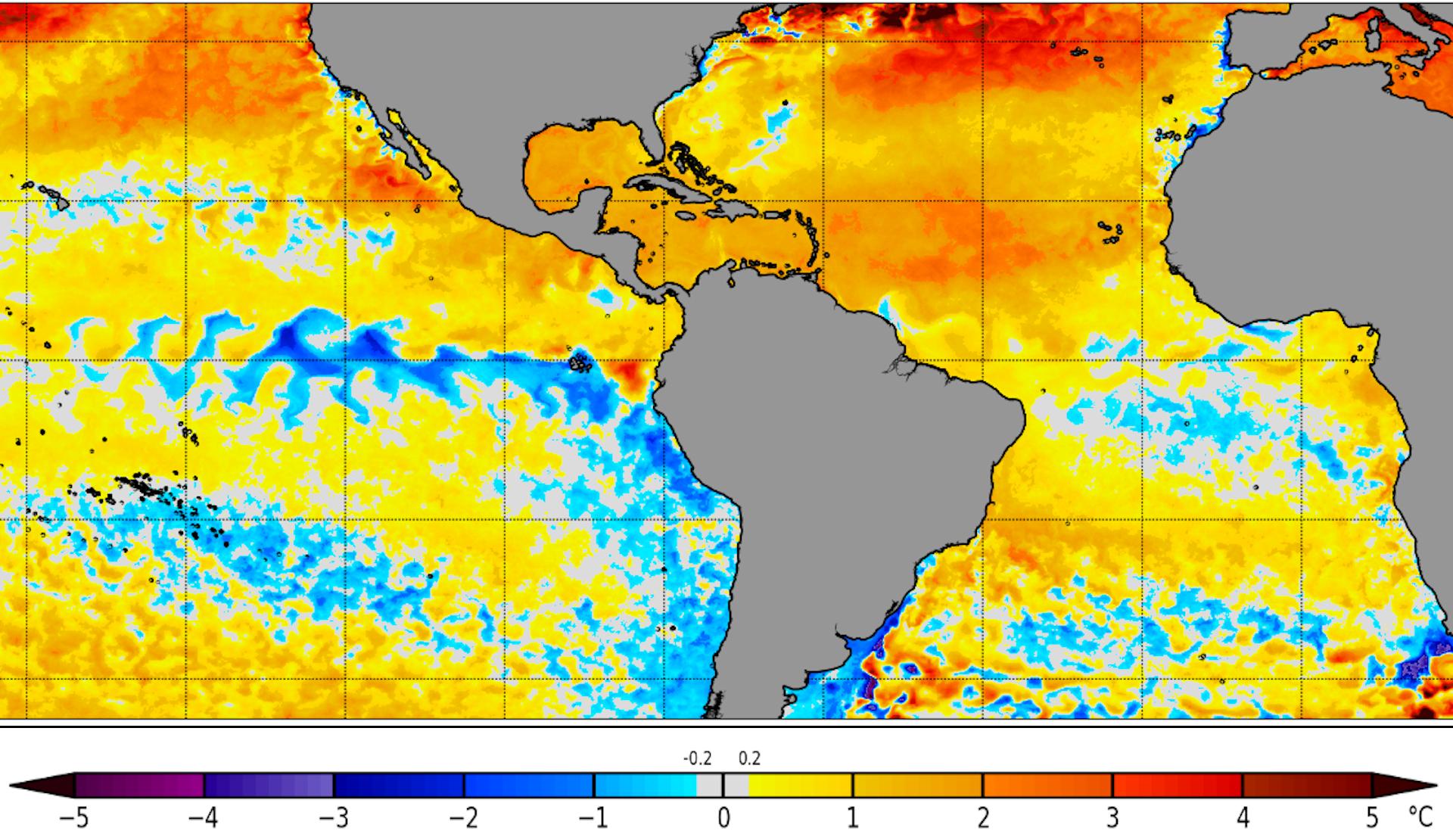 The North Atlantic has been running a fever for months, with ocean surface temperatures at or near record highs. But cooling along the equator in both the Atlantic and eastern Pacific may finally be starting to bring some relief, particularly for vulnerable coral reef ecosystems.