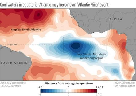 In July and August 2024, meteorologists noted cooling that appeared to be the development of an Atlantic Niña along the equator.