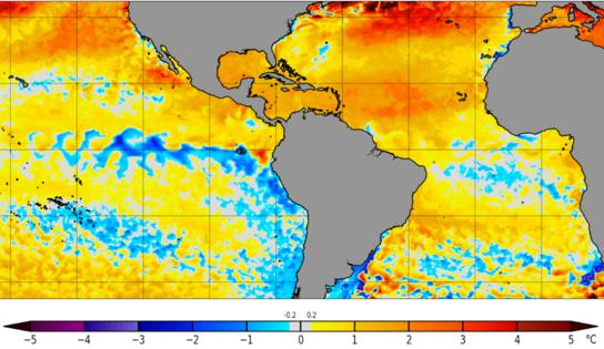 In the tropical Atlantic, the winds at the ocean surface have been weak through most of the summer, and the sea surface temperatures there were quite warm until early June, so signs of an Atlantic Niña emerging were a surprise.