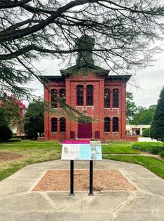 Warwick County’s courthouse in Newport News includes a weatherproofed display panel telling the story of the Confederate monument that once stood there and explaining why and how county officials responded to activists’ calls to remove and place it in storage.