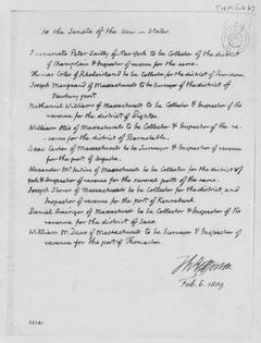After early nominations for the likes of Thomas Jefferson, the first secretary of state, and Alexander Hamilton, the first secretary of the Treasury, Washington personally nominated hundreds of customs collectors, low-ranking officers in the military and territorial officials. One of the first of these came on Aug. 3, 1789, when Washington dispatched the names of 139 nominees for “Collectors, Naval Officers and Surveyors for the Ports.”