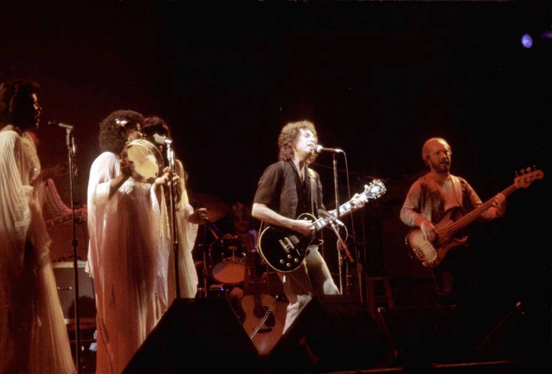His years as a born-again Christian resulted in a series of gospel-influenced albums and at least one more visit to Israel during this early ’80s period. In 1987 he gave his first concerts there, kicking off his Temples in Flames world tour alongside Tom Petty and the Heartbreakers.