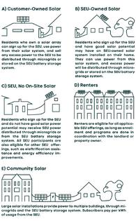 It later plans to create microgrids, which connect groups of homes and buildings, allowing them to share solar power and storage among themselves. In addition, community solar projects would allow residents to buy electricity from nearby homes, businesses or public areas that generate excess solar power. And the city is planning networked geothermal power for a low-income community.