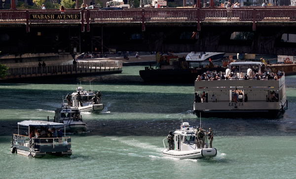 Four CBP boats were spotted traveling east on the Chicago River before they were docked just south of Navy Pier midday Thursday. Federal officials on the boats appeared to be armed.