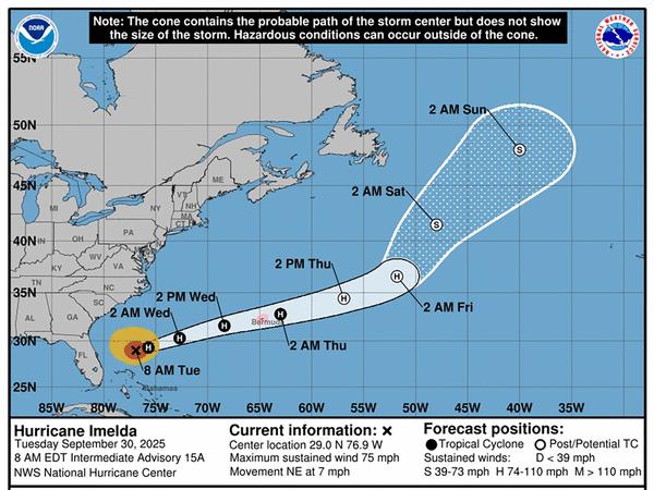 Newly formed Hurricane Imelda leaves Bahamas, Florida behind, to take aim at Bermuda