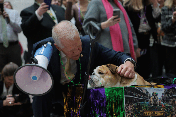With Tillis heading to the exit door, a successor to carry on the hosting duties has yet to be officially named. But a heavy hitter emerged during the parade: Republican Sen. Jim Justice of West Virginia, whose 60-plus-pound English bulldog Babydog has become something of a cultural phenomenon.