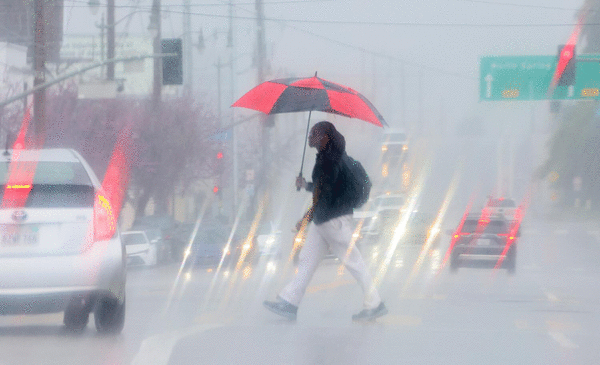 LOS ANGELES — A storm is hitting California late in the wet season, bringing rain to the north and snow to the Sierra Nevada, with Los Angeles expected to receive light rain in time for the Tuesday afternoon commute.