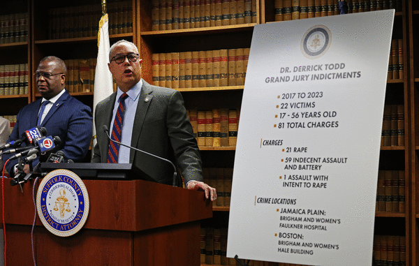 Suffolk County District Attorney Kevin Hayden announced Dr. Derrick Todd’s grand jury indictment Tuesday, describing the case as unprecedented.