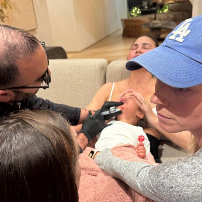 In a photo shared to Chrissy's Instagram Stories on Thursday (04.12.25), the two-year-old tot was being treated by Dr. Ariel Ourian, a plastic surgeon based in Beverly Hills, California, as she lay on her mom's front, whilst Esti's left hand clutched a red lollipop.