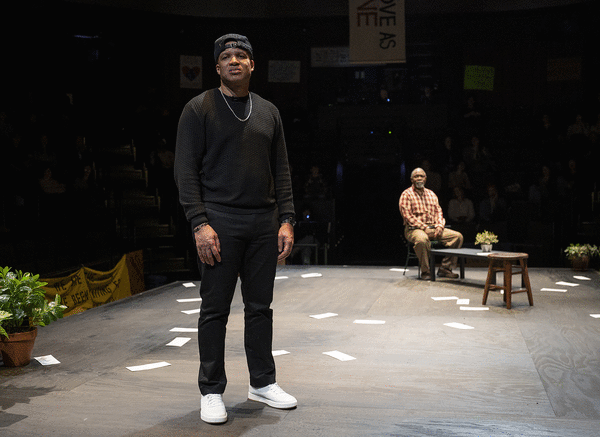 There is no such thing when it comes to the loss of a child, of course, and Mr. Mano, who knows loss all too intimately, tries to hold out, even as he talks to his adopted son, Marcus (Glenn Davis), a character no longer alive but whom McCraney has written as a kind of liaison with the audience, someone who can contextualize not just Mr. Mano’s dilemma, but the action of the play’s young ensemble of protestors, played by Namir Smallwood, Jon Michael Hill and Esco Jouléy, who is extraordinarily good here. Smallwood also plays a police officer with a monologue designed to make clear, I think, that it is the system McCraney is protesting, not the individual officers.