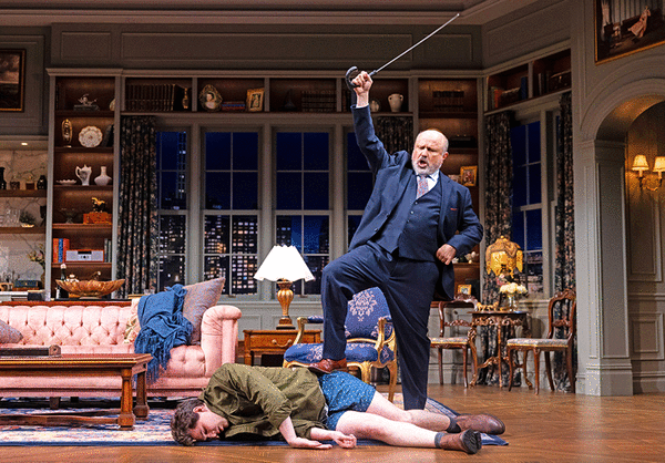 Some clever physical business notwithstanding, the compounding problem with director Jason Alexander’s production is a wildly over-the-top performance from Colantoni, whose endlessly yammering Jerry rampages around Paul Tate dePoo III’s set, often armed with something sharp and always filled with so much rhetorical bile as to make the listener eye the exits. He put me in mind of the famous Broadway story involving the play “I Hate Hamlet” and the sword-wielding actor Nicol Williamson.