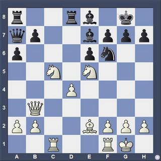 The game continued 1.Nxe6!! fxe6 2.Qxe6+ Kf8 3.Rc7 Nd5 4.Bc4 Rd6 5.Qf5+ Nf6 6.Re1 Bd8 and White is winning here, but how? We’ll start with this position on Wednesday. Stay tuned!