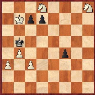 This interesting position is a win for White despite the Black pawn on f4 be able to get to f1 pretty quickly. The key is obviously how you use those knights at first and later you'll find the White pawns are there for a reason as well! This is from a study by J. Hasek, published in La Strategie in 1929.