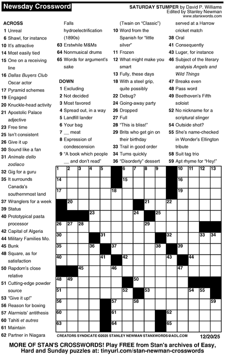 Crossword for 12/20/2025