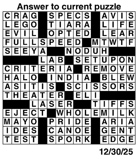 Crossword for 12/29/2025