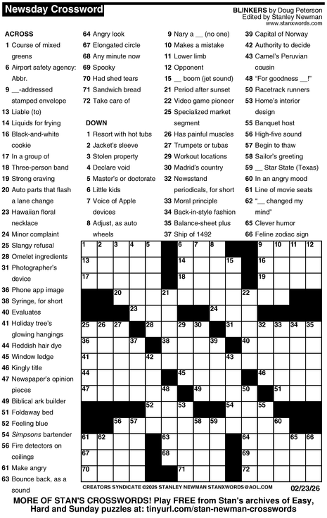 Crossword for 2/23/2026