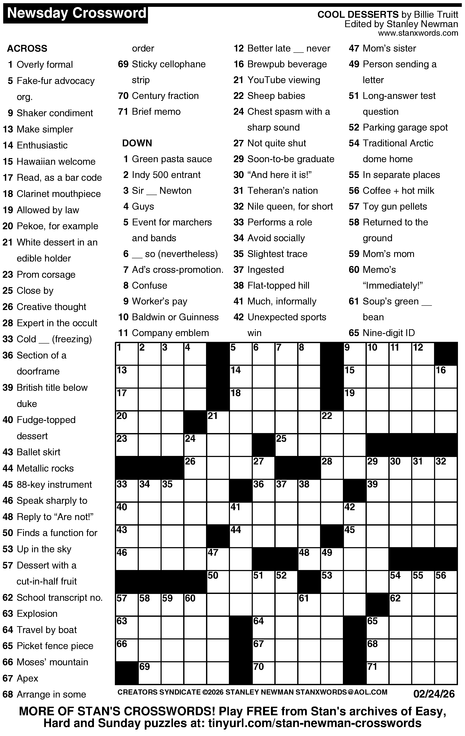 Crossword for 2/24/2026