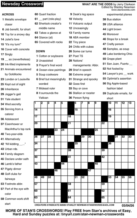 Crossword for 3/4/2026