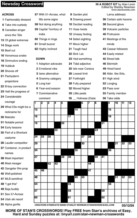 Crossword for 3/12/2026