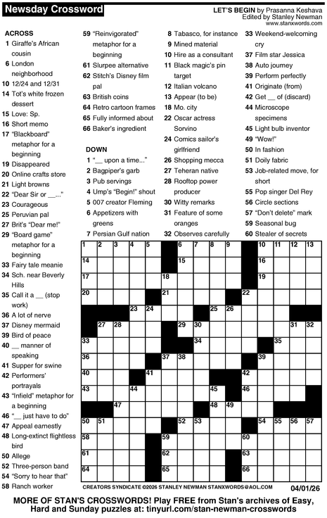 Crossword for 4/1/2026