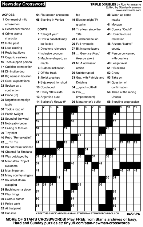 Crossword for 4/23/2026