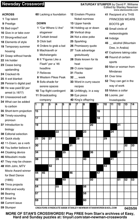 Crossword for 4/25/2026