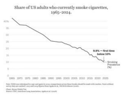 This is where cannabis enters the conversation. As legalization spreads across the U.S., cannabis has increasingly been positioned—rightly or wrongly—as an alternative to tobacco. Some consumers report substituting cannabis for cigarettes, particularly in states where recreational use is legal. Additionally, the cultural normalization of cannabis has paralleled the denormalization of tobacco. Smoking a cigarette today often carries more stigma than consuming cannabis in many social circles. There is also a behavioral shift at play. Modern consumers are more health-conscious and more willing to explore alternatives, whether it means vaping, nicotine pouches, or cannabis products. While cannabis is not risk-free, it is often perceived as less harmful than combustible tobacco, influencing consumer choices and potentially accelerating the decline in cigarette use. Yet even as cigarette consumption drops, the tobacco industry remains highly profitable. Major tobacco companies have adapted rather than disappeared. They continue to generate billions in annual revenue, leveraging price increases, global markets, and new product categories like e-cigarettes and smokeless nicotine. Declining smoking rates in the U.S. have been offset by growth in developing markets and diversification into alternative nicotine products. In other words, while fewer Americans are lighting up, the business of nicotine is far from extinguished. Tobacco companies are evolving alongside consumer behavior—ensuring even as traditional smoking declines, profitability endures. The result is a paradox: a historic public health success unfolding alongside a resilient, highly profitable industry still shaping the future of consumption.