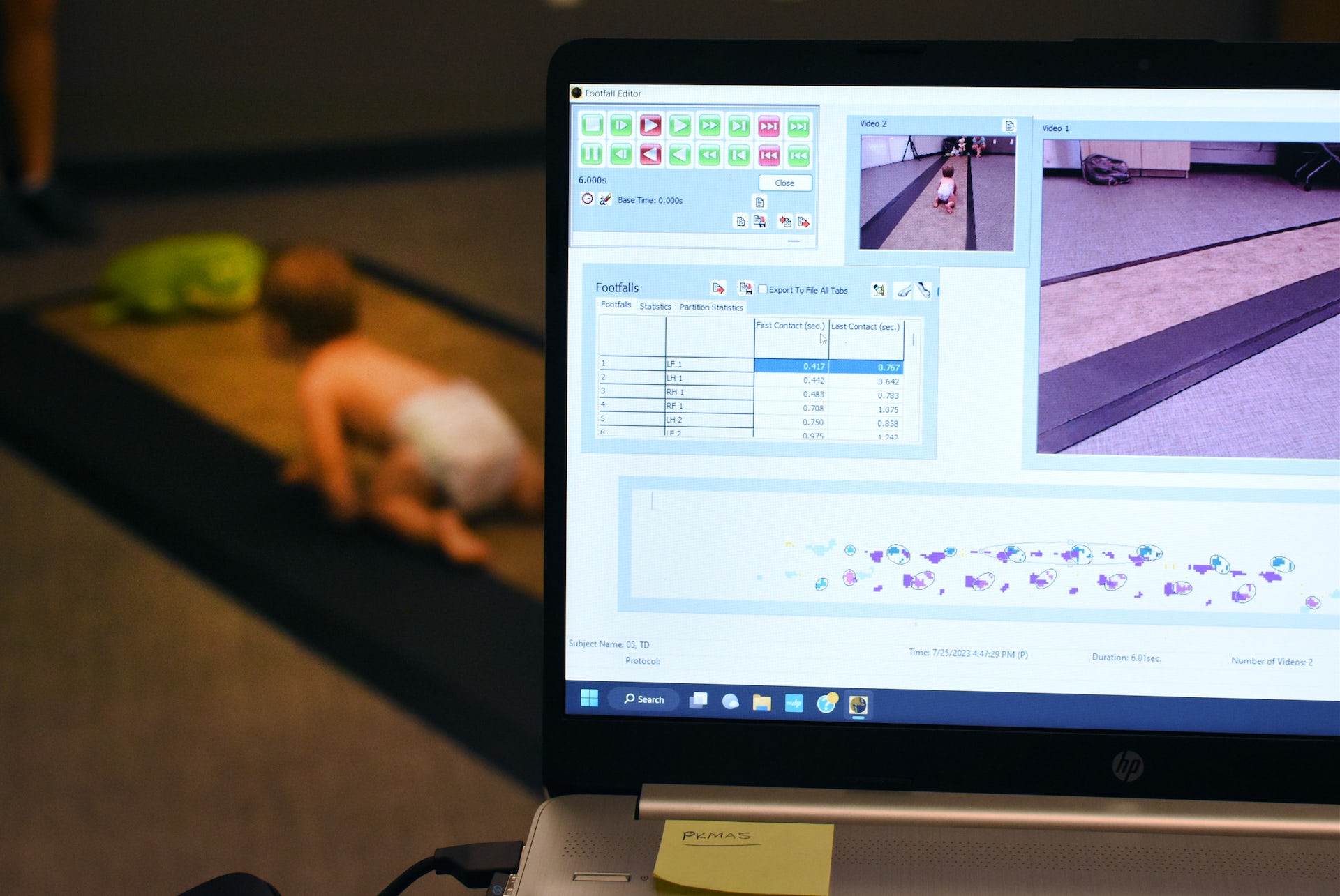 And as any parent or caregiver can attest, babies can be a tough population to work with. They don’t follow directions well, they’re temperamental, and they’ll pull a reflective marker off their skin and pop it in their mouth in a second if you let them. We had to watch our study subjects like hawks.