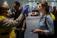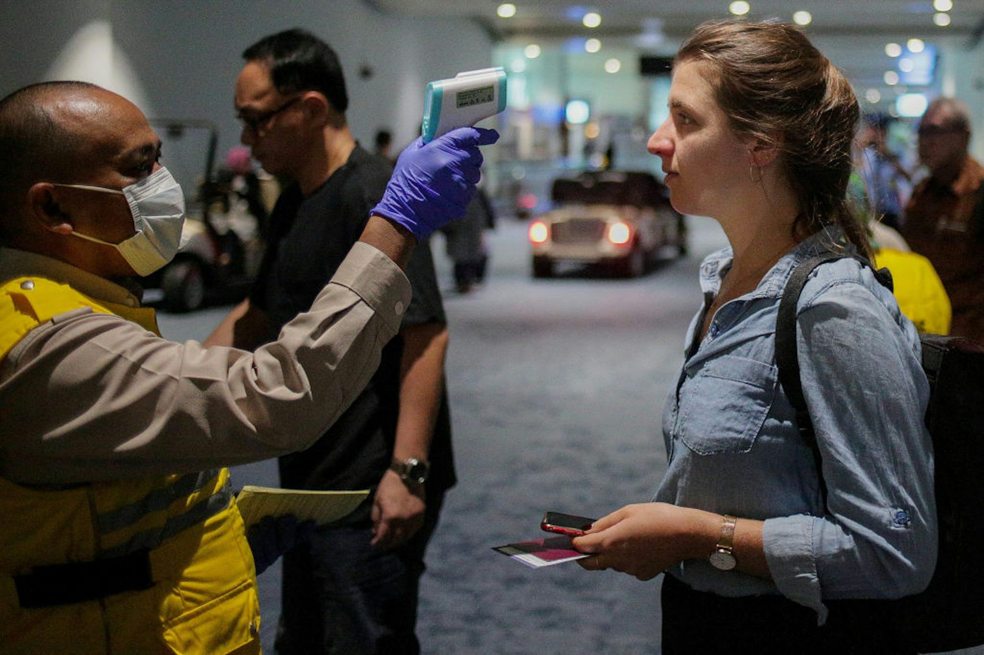 The virus can be transmitted through contact with an infected person or animal or contaminated surfaces. Typically, the virus enters the body through broken skin, inhalation or the mucous membranes in the eyes, nose or mouth. Researchers believe that human-to-human transmission is mostly through inhalation of large respiratory droplets rather than direct contact with bodily fluids or indirect contact through clothes.