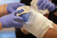 PHILADELPHIA — Kelly Wyatt winced as a nurse unwrapped layers of gauze from her left leg, exposing the massive wound beneath.