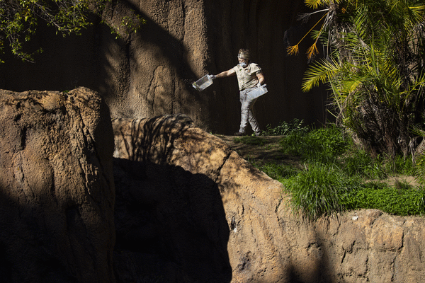 LOS ANGELES — Every morning while the great apes of the L.A. Zoo are sleeping, Tania Prebble goes around distributing their food, medicine and other essentials.