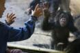 Zoo docents hovered nearby to answer questions while parents crouched beside their toddlers and pointed to similarities with the apes' hands and feet.