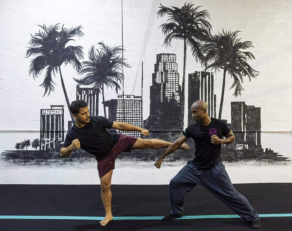 MIAMI — South Florida has no shortage of fitness centers — but how many teach you to get kicked in the gut and then properly fall? Or tumble onto the ground from a high-wire? What about getting pushed around on a crash mat?