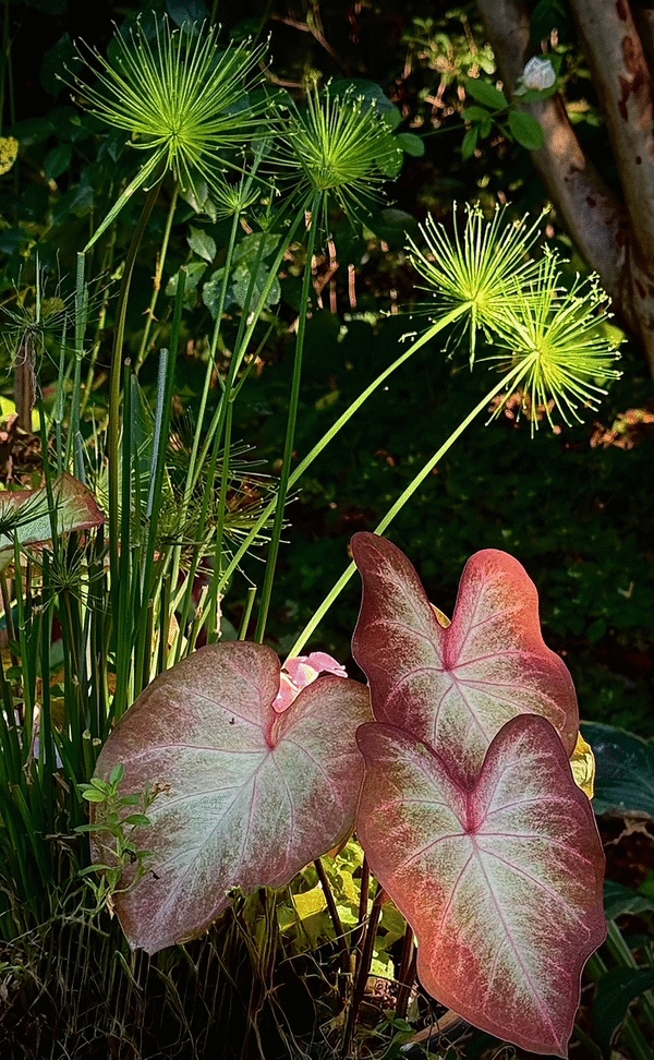 So I’ll use the Graceful Grasses Queen Tut papyrus with Heart to Heart caladiums, Supertunia petunias, Luscious lantanas and countless others. The Queen Tut will immediately look effective while the partners are playing catch up. Oh yes, if you have a water feature at your home, then Queen Tut may be the plant for which you have been searching.
