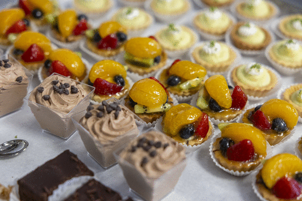 At 7 a.m. every weekday, Wright rolls into Deluxe’s kosher kitchen in Strawberry Mansion and spends four hours on his feet making 300 to 400 finger-sized, dairy-free servings of glazed fruit tarts, chocolate mousse dollops, and cute little key lime pies, among various other pastries.