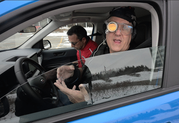 J.D. McNees, the 17-year-old son of the Ford engineer who wore the hangover suit, participated in DSFL at the Manheim used vehicle auction site in Carleton shortly after getting his license. He admits he originally wasn't excited to participate in the weekend four-hour course that combines a short period in a classroom with mostly behind-the-wheel training in Ford-provided vehicles. But after going through the program, he thought it was worth the time.