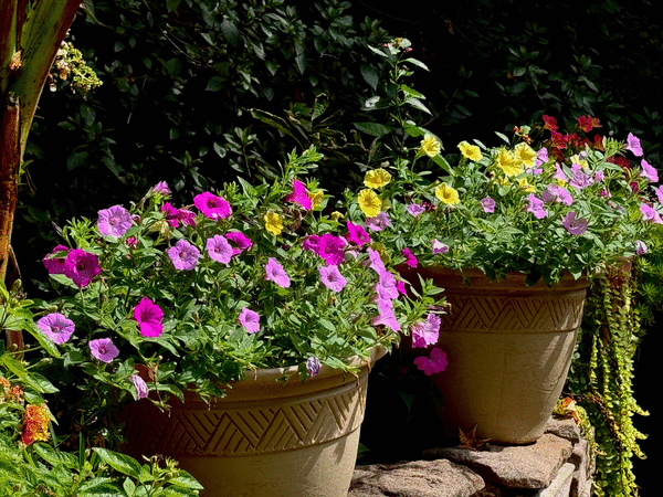 One thing that will be fun is hearing everyone’s vision of what is complementary and triadic for Supertunia Vista Cool Jazz. The Vista Cool Jazz color is not found on the artist’s color wheel. Plus, Vista Cool Jazz has subtle changes throughout the day, as sunlight varies. When the first Proven Winners photos came out, they were showing pink. For one brief moment in time, I saw that in one of my containers, but never again.