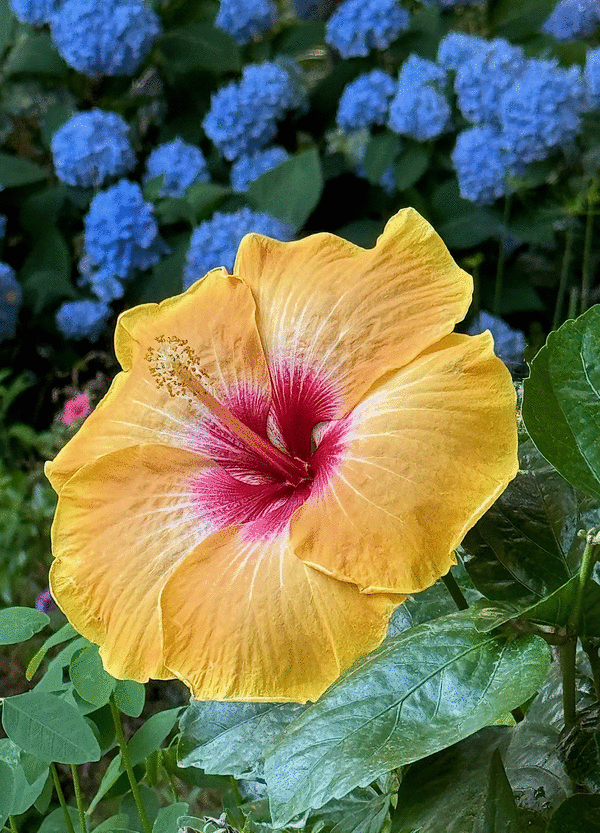 It seemed natural for me to plant Shadowland hosta varieties that had strong yellow or gold variegation to contrast with the blue hydrangea blooms. Shadowland Coast to Coast with chartreuse foliage is also awesome.