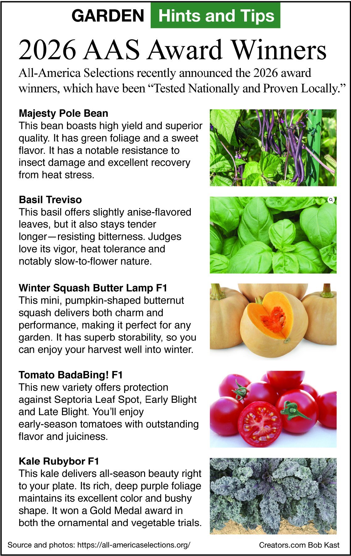 When I go shopping for vegetables at the garden center or look for seeds in the catalogs that have begun arriving, I look for the red, white and blue logo of All-America Selections. Even AAS winners from several years ago are more likely to produce more vegetables and grow more flowers than current nonwinners.
