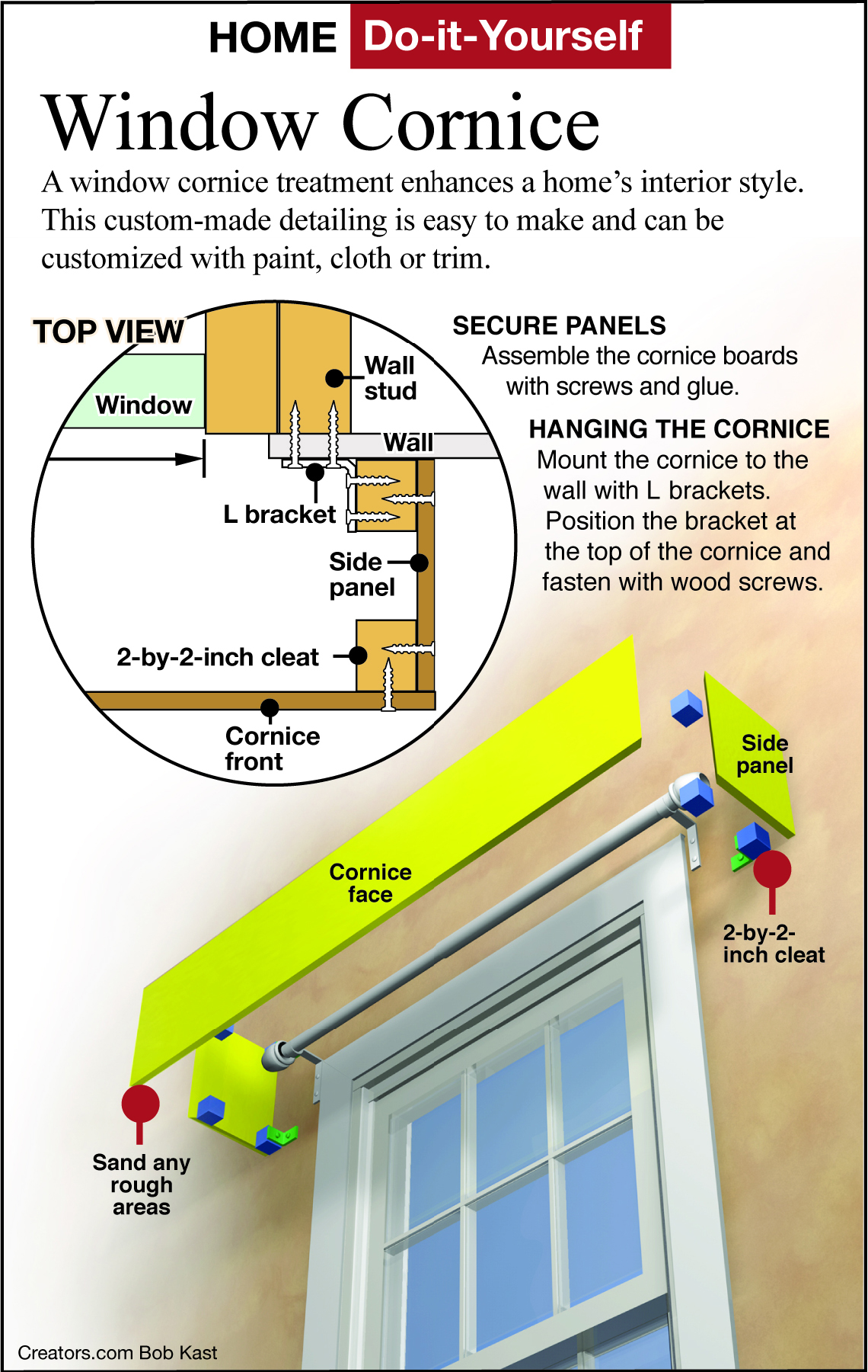 Dear Jennie: For a dramatic improvement in any room's decor, making and installing cornices over your windows is a wise choice. They add a decorative touch while hiding the curtain and drapery rods and hardware. They don't need to be extremely ornate, so building them is a do-it-yourself job that most people can handle easily.